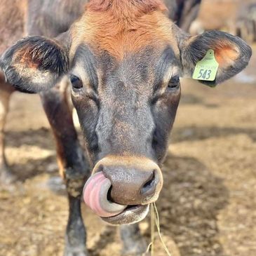 Hey, my name is Lavander and I am one of the many that live on the family farm located in Troy, ME. Where Kyle and Nicole collect the milk that they then turn into their cheese products. The milking herd consists of 10 Registered Jerseys, and we are milked in a tie-stall barn. We are grass-fed year-round, in the summer we graze on the lus